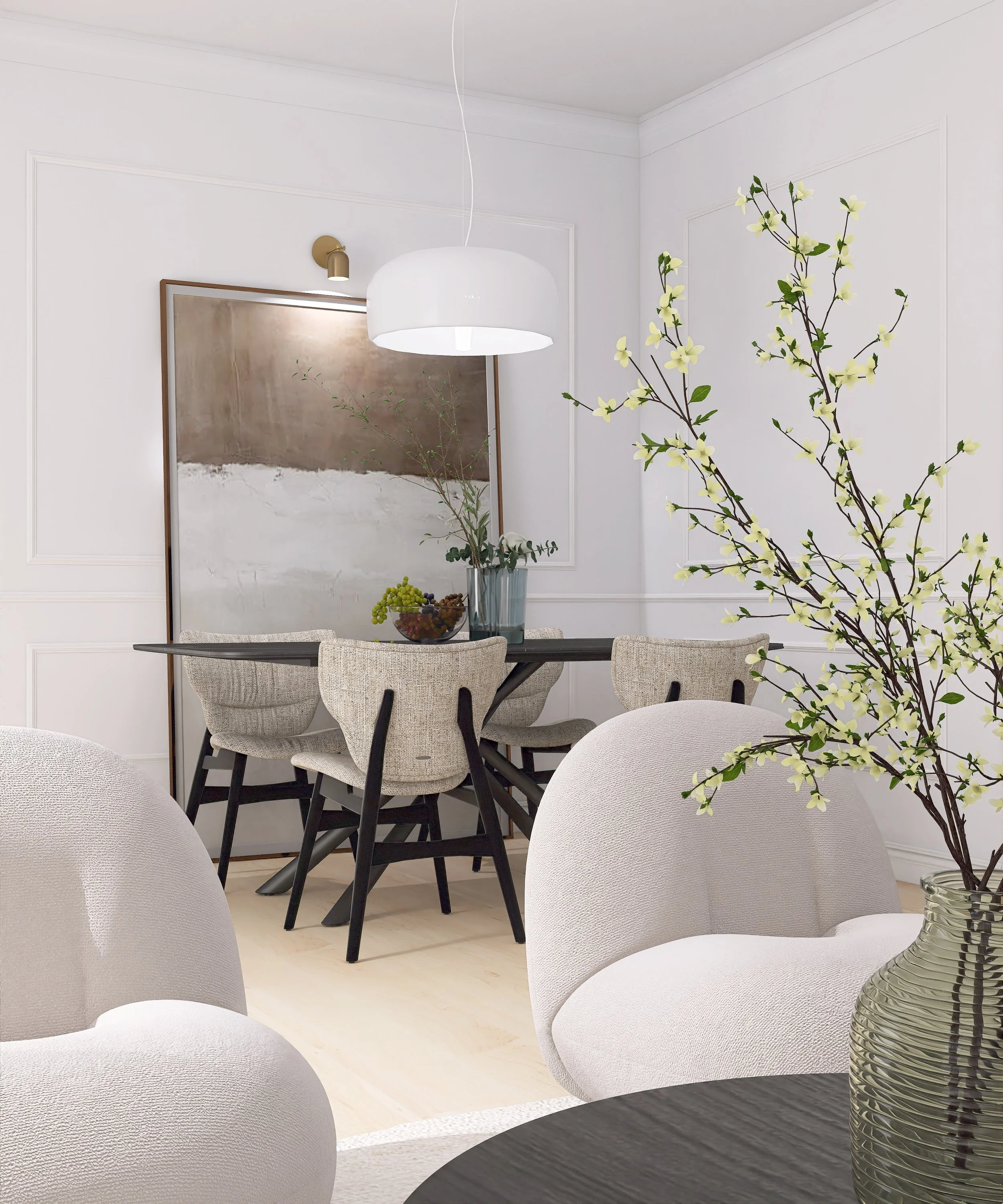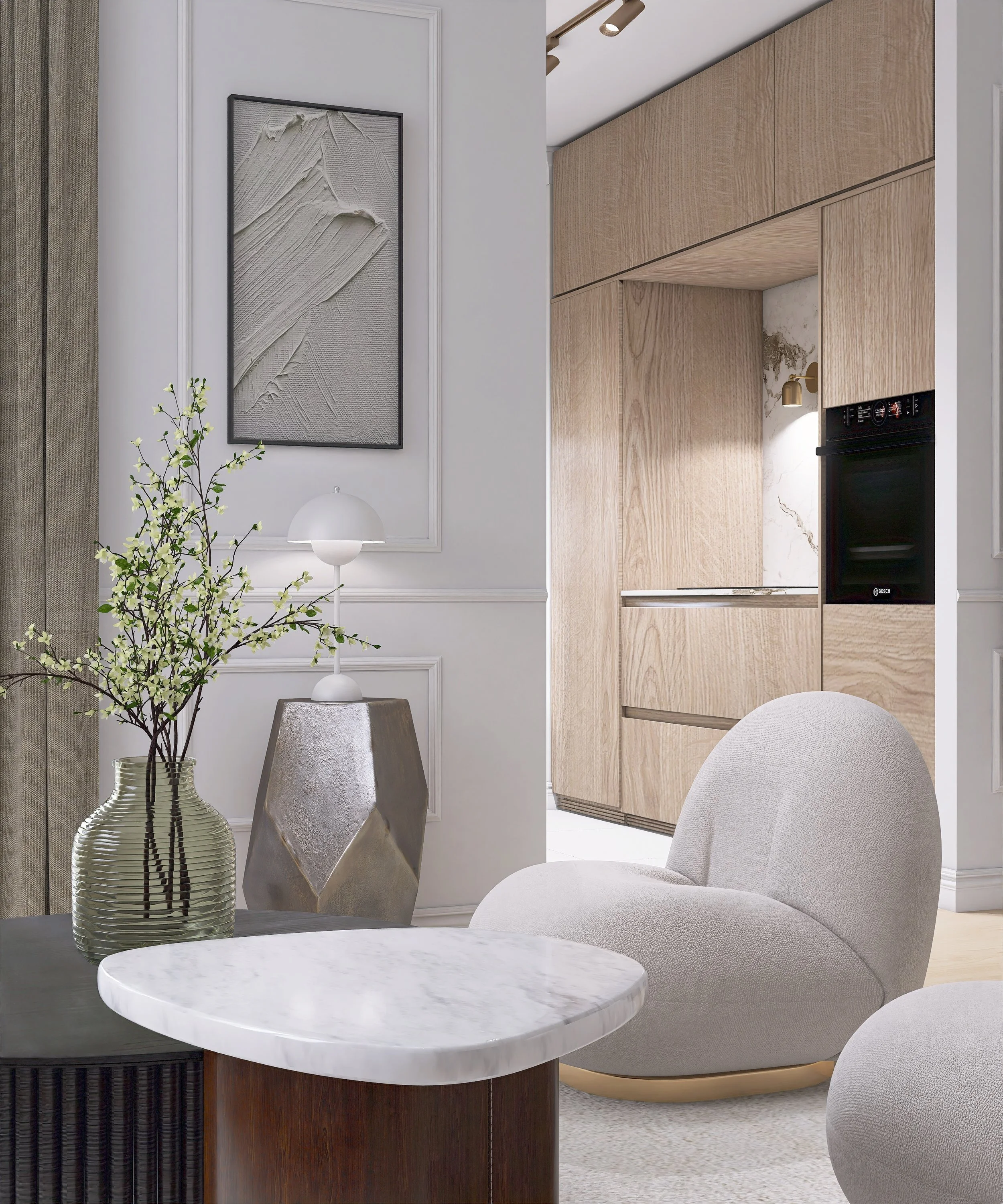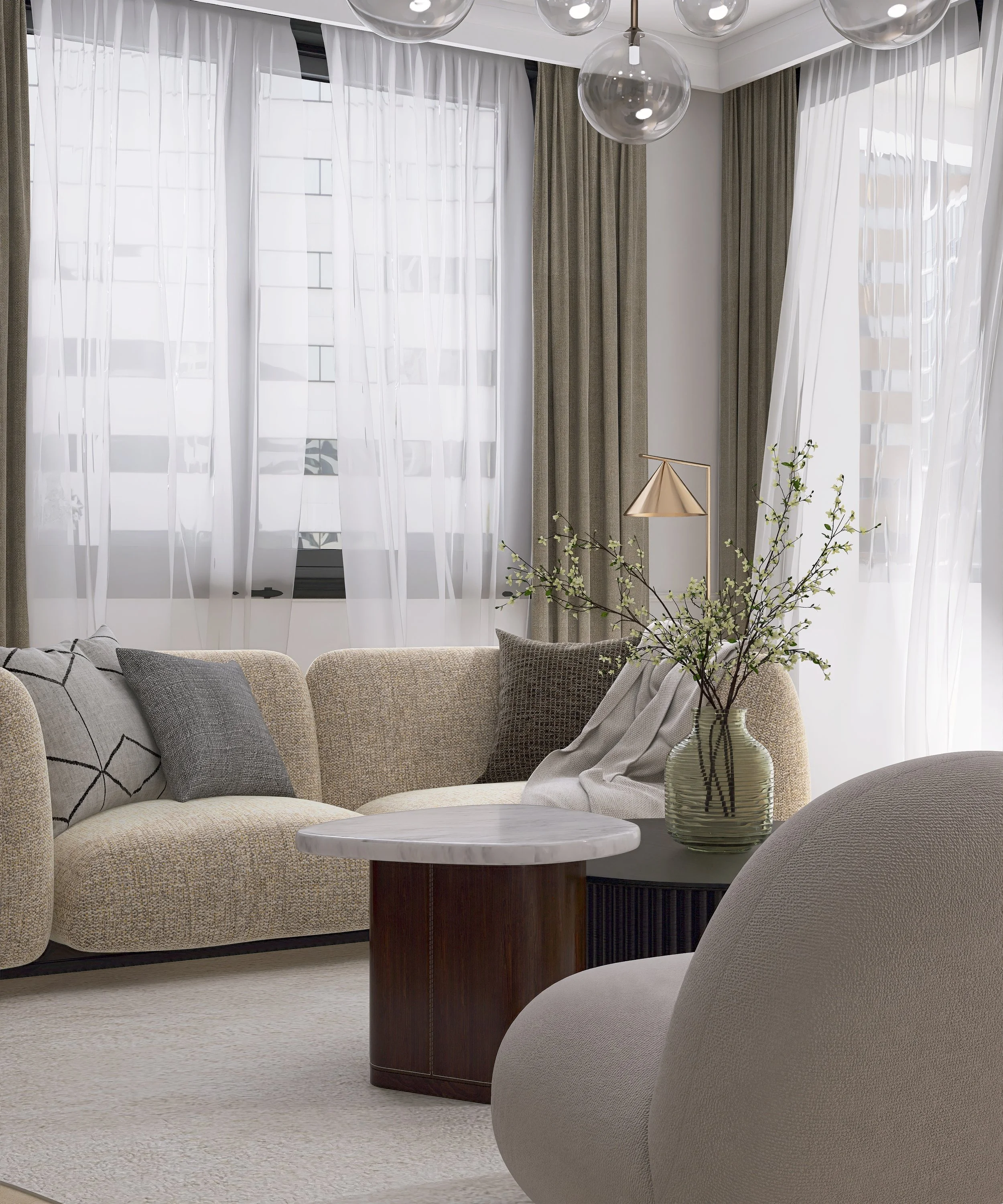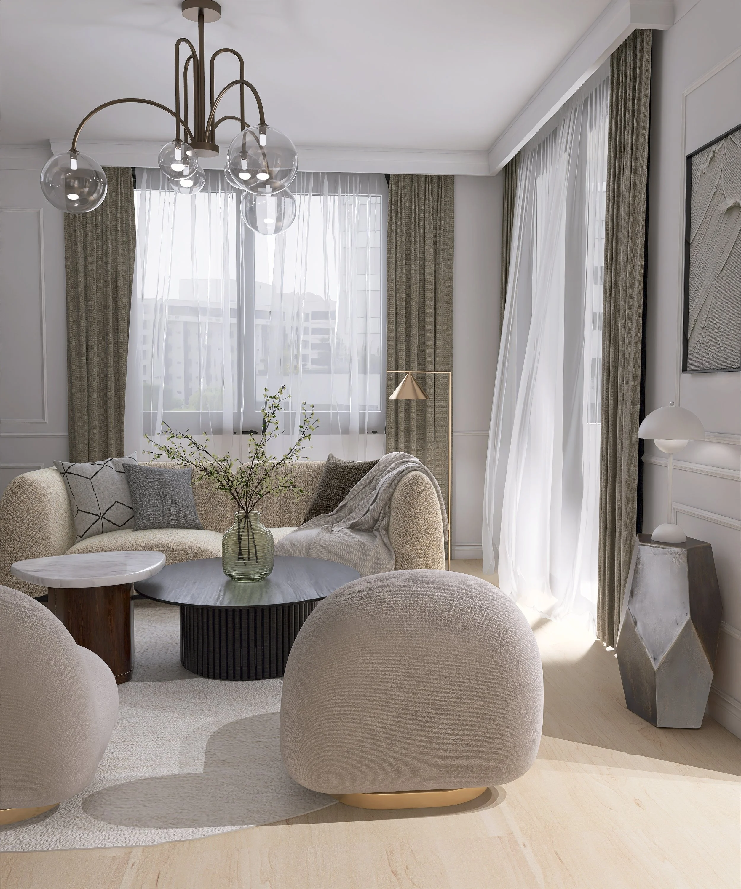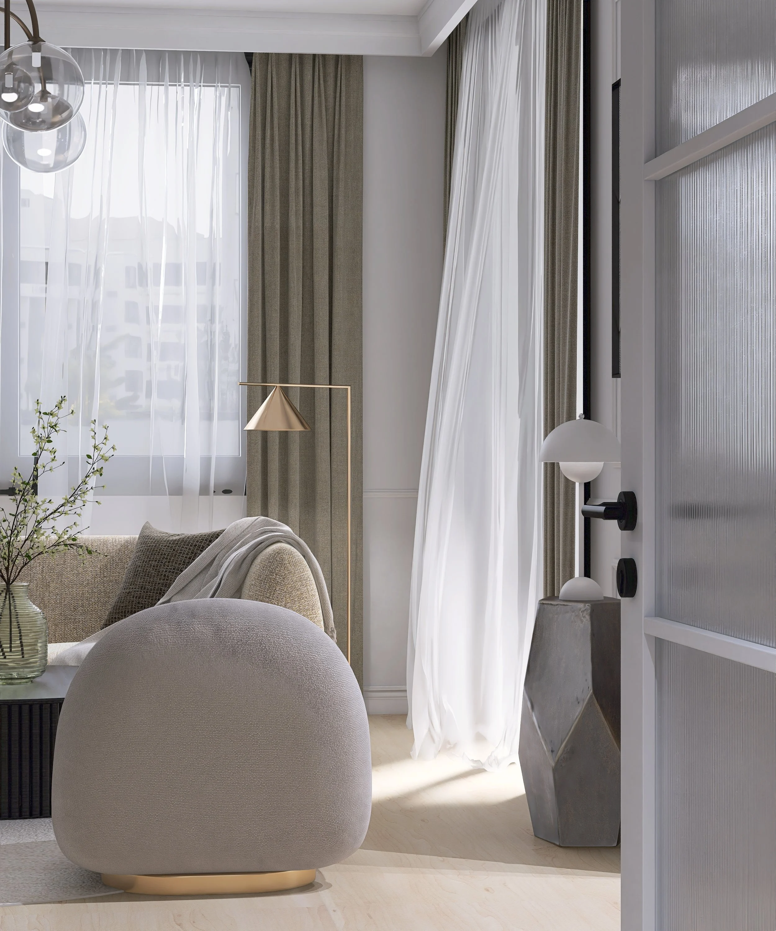 Airiness, clarity, and tactile softness guide the entire concept — creating an interior that brings a sense of calm while reflecting a personal touch.
